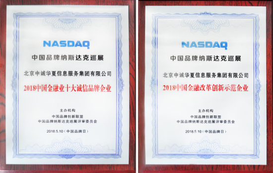 作為中國民族品牌的佼佼者,中誠華夏集團(tuán)入圍由中國品牌創(chuàng)新聯(lián)盟與中國品牌納斯達(dá)克巡展評(píng)審委員會(huì)聯(lián)合舉辦的“中國品牌納斯達(dá)克巡展”,作為巡展“支持單位”在美國紐約時(shí)代廣場納斯達(dá)克大屏進(jìn)行展示,同時(shí)憑借實(shí)力斬獲“2018中國金融業(yè)十大誠信品牌企業(yè)”、“2018中國金融改革創(chuàng)新示范企業(yè)”雙項(xiàng)行業(yè)大獎(jiǎng)。